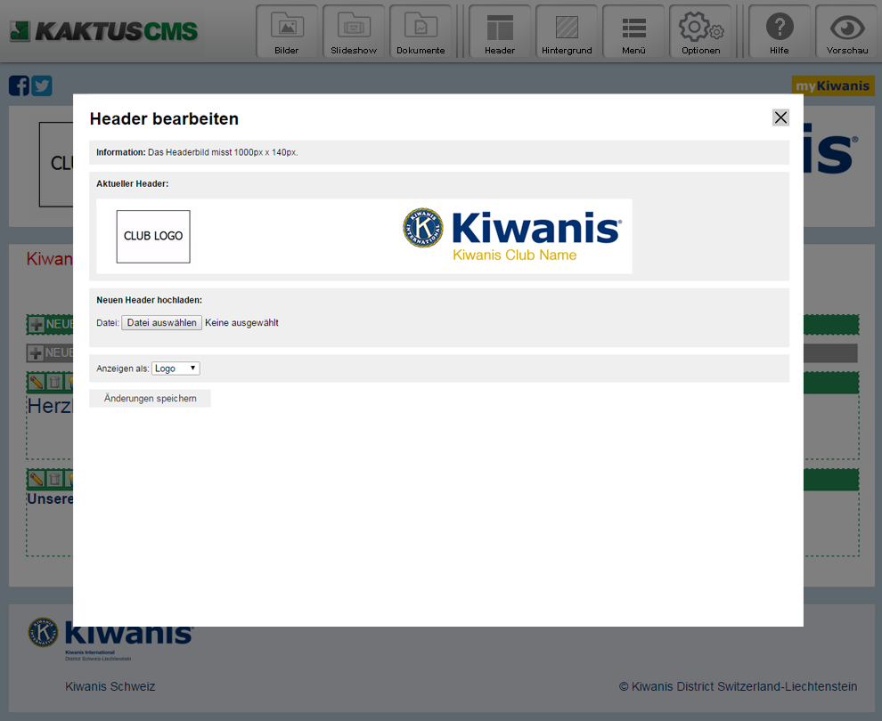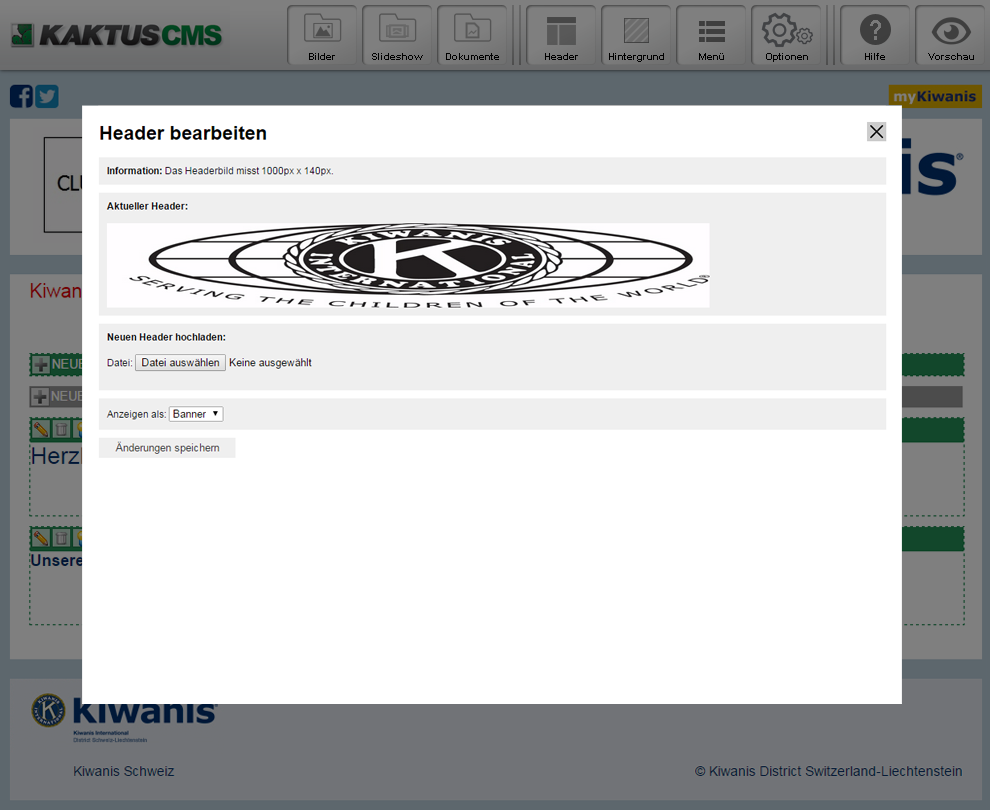 wohingegen der Banner formatfüllend ist und das Kiwanis Logo, sowie den Clubnamen ausblendet.